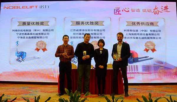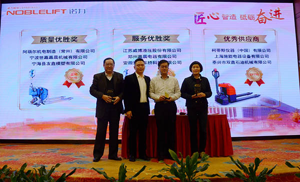 大會上,諾力步駕式車輛技術部部長羅曼進行了重點產(chǎn)品推薦,總經(jīng)理助理、四期工廠廠長陳黎升介紹了四期智能工廠建設情況,質(zhì)量管理部部長周偉寶就采購件質(zhì)量服務工作提出要求。江蘇威博液壓股份有限公司等2家優(yōu)秀供應商代表在會上作了典型發(fā)言,上海士商進出口有限公司等2家供應商在大會上簽訂年度采購協(xié)議,柯蒂斯儀器(中國)等9家優(yōu)秀供應商受到隆重表彰。